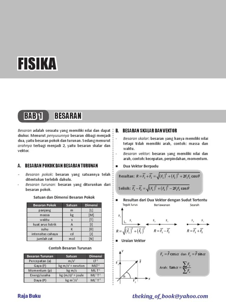Mekanika fisika adalah bagian ilmu fisika yang mempelajari gaya gerak suatu benda dan efek yang dihasilkan gaya tersebut. Gaya (f) merupakan sebuah besaran turunan dari hasil perkalian antara massa (m) dengan percepatan (a). = koefisien muai luas = koefisien muai volume. Contoh besaran turunan adalah luas, volume, kecepatan, gaya, usaha, energi, tekanan, percepatan, dan sebagainya. Di atas kita sudah dapat bahwa satuan dari gaya adalah kg.ms2 .
