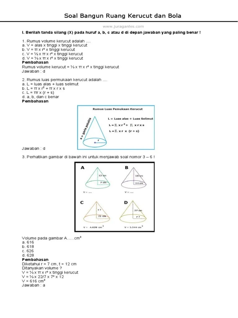 Kenapa persegi tidak memiliki volume? Karena tabung, kubus, balok, bola, kerucut, dan prisma segitiga merupakan bangun tiga dimensi atau . Rumus volume kerucut adalah ⅓ × π × r × r × t. Sekarang perhatikan rumus (4/3)πr3, rumus tersebut sama dengan 4(1/3)πr3. Kerucut#bola#volumegabunganvolume gabungan antara kerucut dan setengah bola serta luas permukaan dari gabungan bangun ruang ini saya .